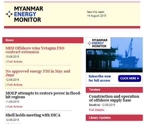 Please complete the form below to receive our free Myanmar energy and power newsletter every Friday.